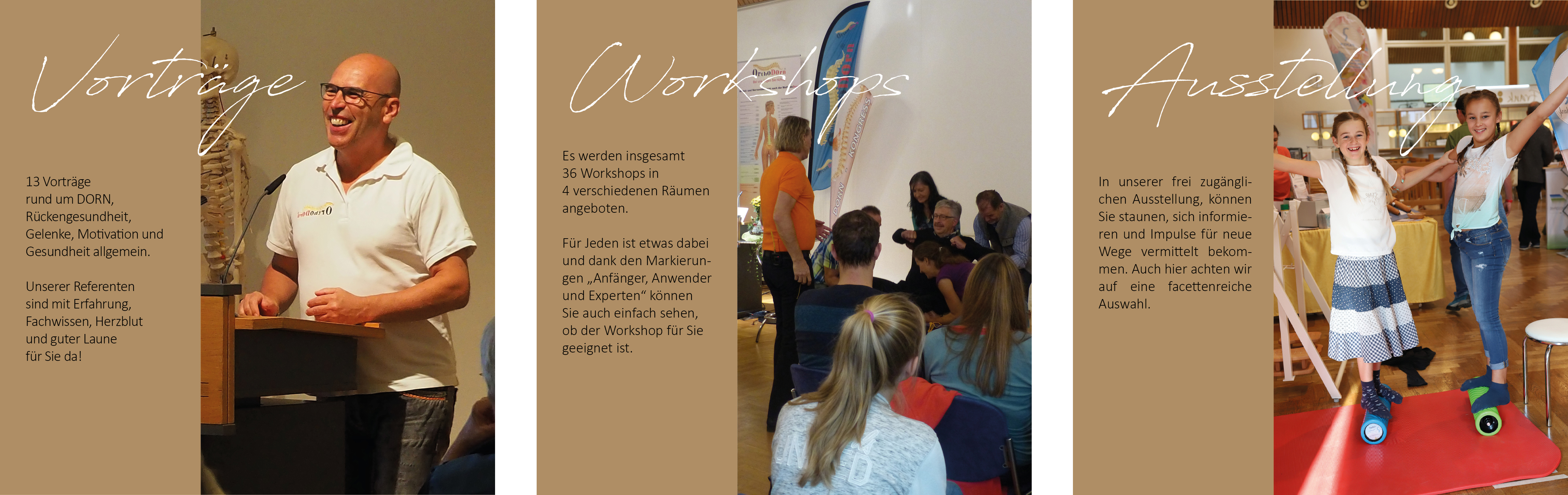 Für jeden, dem seine Gesundheit am Herzen liegt! Mit einer großen kostenfreien Gesundheitsausstellung, 13 Vorträgen, 27 Workshops rund um das Thema Rücken, Gelenke, DORN-Anwendungen und vielen mehr!