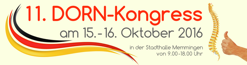 Nach den großen Erfolgen der letzten Kongresse findet heuer der 11. DORN-Kongress am 15. und 16. Oktober 2016 in der Stadthalle Memmingen statt. Anmeldungen für Workshops oder Aussteller sind noch möglich.