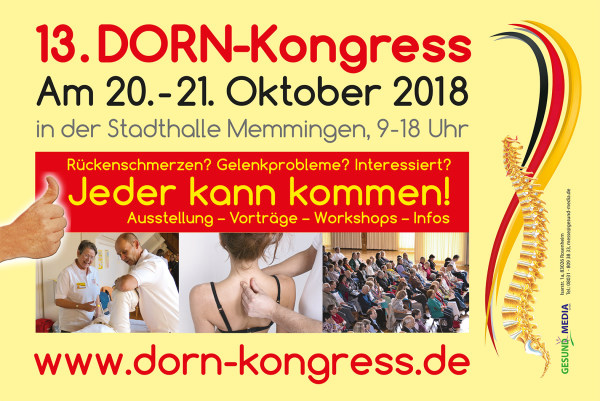 Auch Sie können den DORN-Kongress auf einfache Art und Weise unterstützen. Gerne senden wir Ihnen Werbematerialien wie Programmhefte, Planen oder Aufkleber zu. Diese können Sie auslegen, verteilen oder verschicken. Umgekehrt hinterlassen die Werbemaßnahmen einen seriösen und professionellen Eindruck bei Ihren Patienten und Kunden. Natürlich erhalten Sie die Werbemittel kostenfrei von der Gesund Media GmbH.