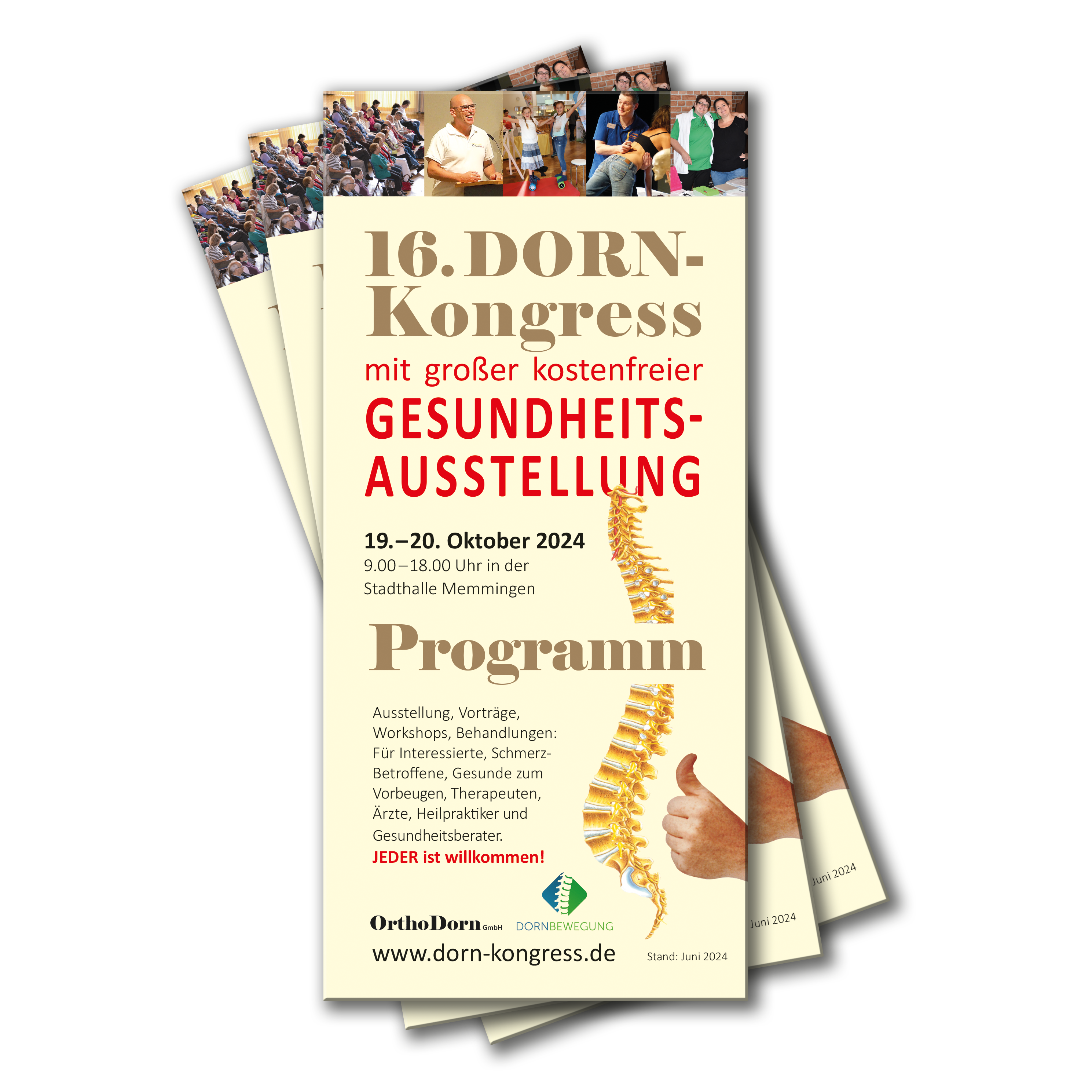 Auch Sie können den DORN-Kongress auf einfache Art und Weise unterstützen. Gerne stellen wir Ihnen digitale Werbematerialen zur Verfügung oder senden Ihnen Werbematerialien per Post zu. Diese können Sie auslegen, verteilen oder verschicken. Umgekehrt hinterlassen die Werbemaßnahmen einen seriösen und professionellen Eindruck bei Ihren Patienten und Kunden. Natürlich erhalten Sie die Werbemittel kostenfrei von der OrthoDorn GmbH. Wir freuen uns auf Ihre Mithilfe!